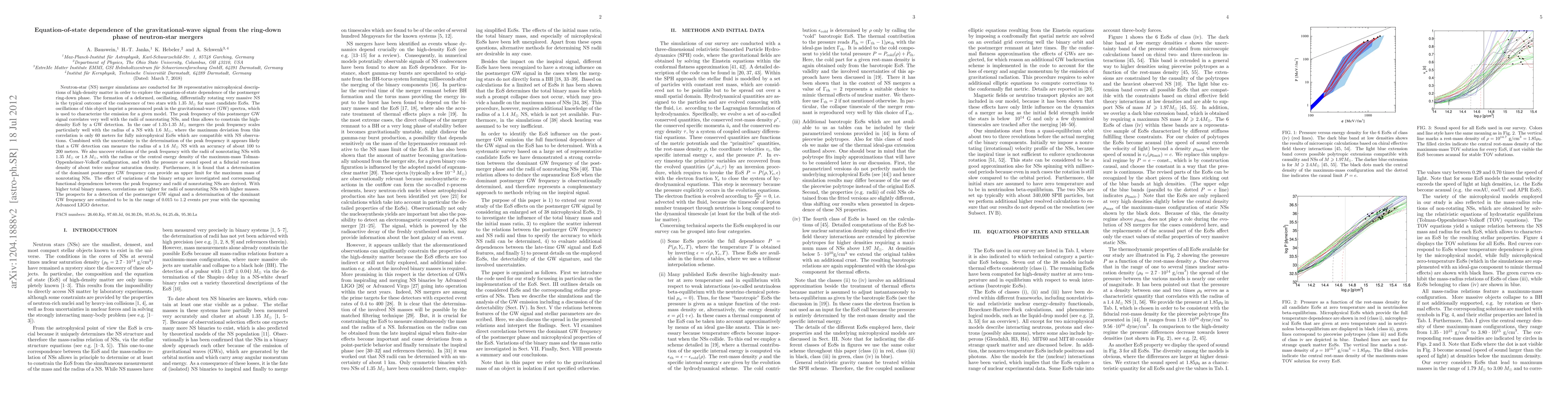 Neutron-star (NS) merger simulations are conducted for 38 representative microphysical descriptions of high-density matter in order to explore the equation-of-state dependence of the postmerger ring-down phase. The formation of a deformed, oscillating, differentially rotating very massive NS is the typical outcome of the coalescence of two stars with 1.35 $M_{\odot}$ for most candidate EoSs. The oscillations of this object imprint a pronounced peak in the gravitational-wave (GW) spectra, which is used to characterize the emission for a given model. The peak frequency of this postmerger GW signal correlates very well with the radii of nonrotating NSs, and thus allows to constrain the high-density EoS by a GW detection. In the case of 1.35-1.35 $M_{\odot}$ mergers the peak frequency scales particularly well with the radius of a NS with 1.6 $M_{\odot}$, where the maximum deviation from this correlation is only 60 meters for fully microphysical EoSs which are compatible with NS observations. Combined with the uncertainty in the determination of the peak frequency it appears likely that a GW detection can measure the radius of a 1.6 $M_{\odot}$ NS with an accuracy of about 100 to 200 meters. We also uncover relations of the peak frequency with the radii of nonrotating NSs with 1.35 $M_{\odot}$ or 1.8 $M_{\odot}$, with the radius or the central energy density of the maximum-mass Tolman-Oppenheimer-Volkoff configuration, and with the pressure or sound speed at a fiducial rest-mass density of about twice nuclear saturation density. Furthermore, it is found that a determination of the dominant postmerger GW frequency can provide an upper limit for the maximum mass of nonrotating NSs. The prospects for a detection of the postmerger GW signal and a determination of the dominant GW frequency are estimated to be in the range of 0.015 to 1.2 events per year with the upcoming Advanced LIGO detector.