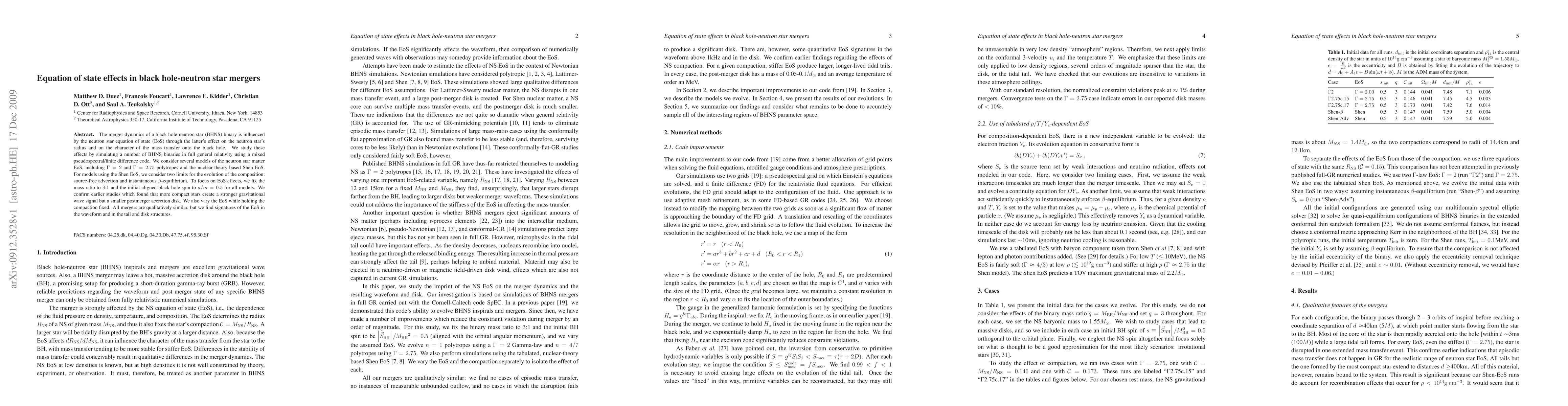 This paper investigates how different neutron star equations of state (EoS) affect the dynamics of black hole-neutron star mergers, finding that more compact neutron stars produce stronger gravitational waves but smaller accretion disks. The study uses full general relativity simulations and identifies EoS-specific signatures in the waveform and postmerger structures.