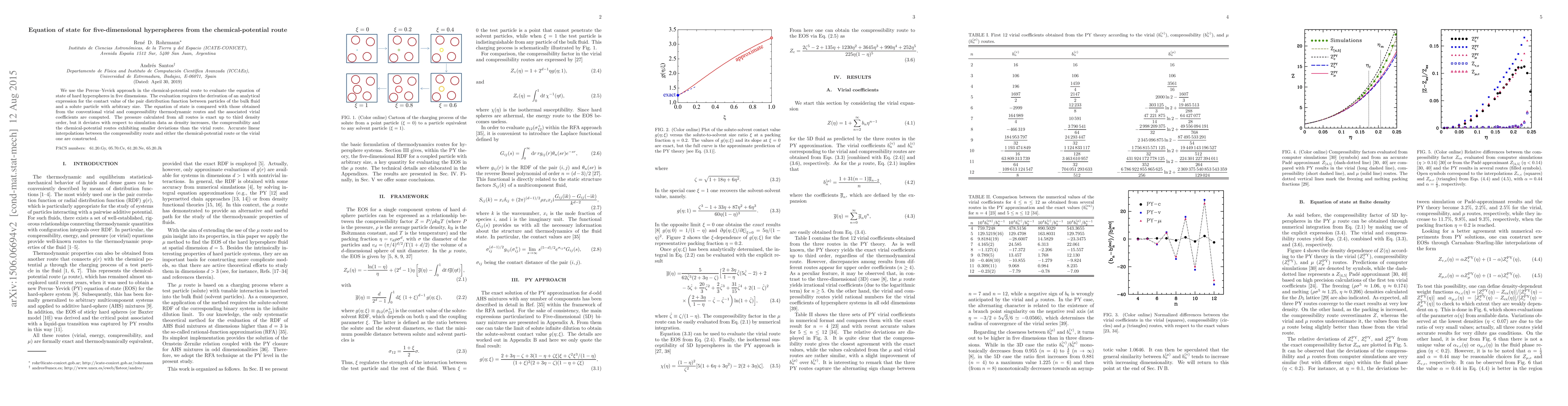This paper evaluates the equation of state for five-dimensional hard hyperspheres using the Percus-Yevick approach via the chemical-potential route, comparing it with virial and compressibility routes. The pressure is exact up to third density order but shows better agreement with simulation data for higher densities using the compressibility and chemical-potential routes.