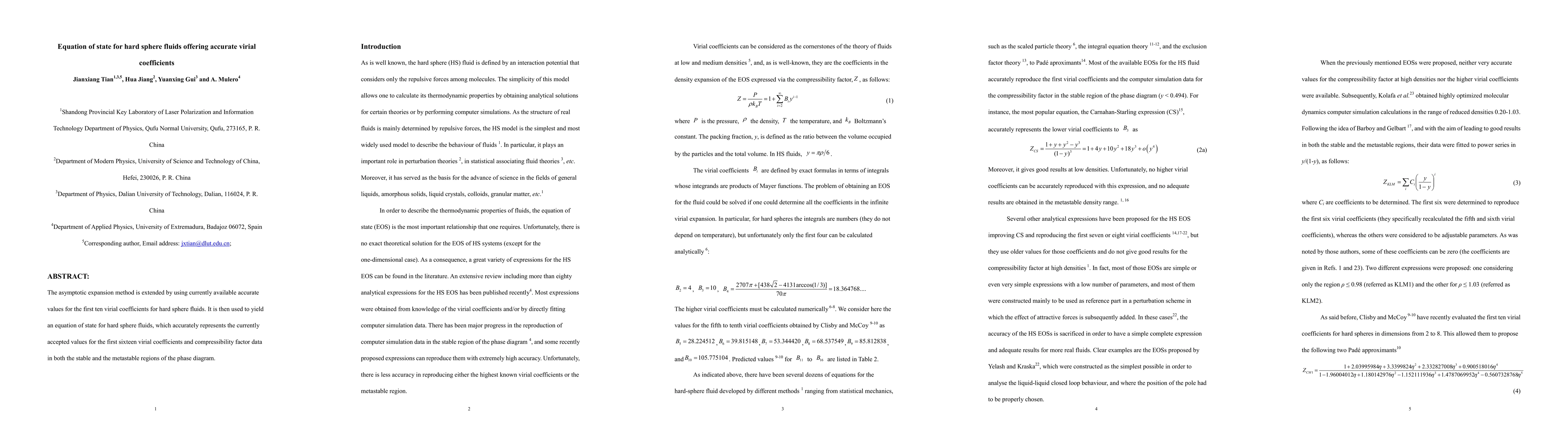 This paper extends the asymptotic expansion method to derive an accurate equation of state for hard sphere fluids, utilizing precise values for the first ten virial coefficients to represent the first sixteen virial coefficients and compressibility factor data across stable and metastable regions.