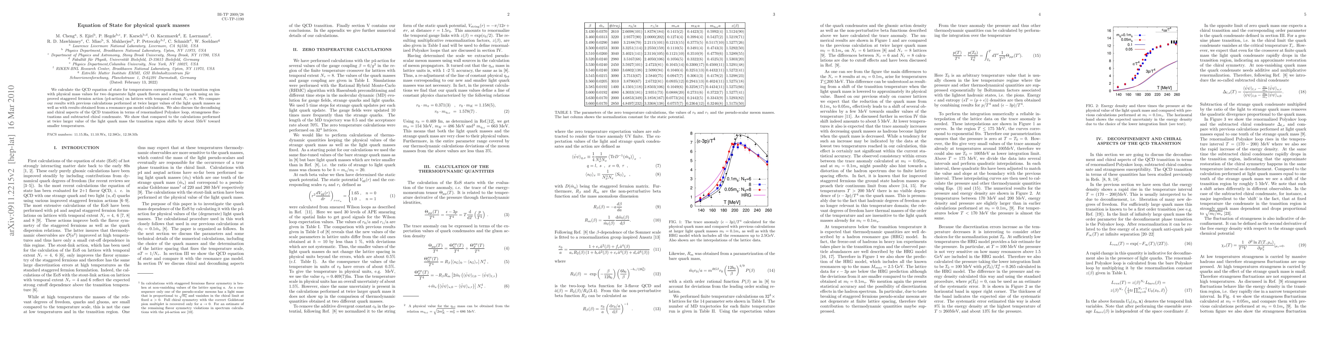 This study calculates the QCD equation of state for physical quark masses using an improved staggered fermion action on lattices, comparing results with previous calculations and a resonance gas model. The findings show a shift in the transition region by about 5 MeV toward lower temperatures compared to calculations with larger quark masses.