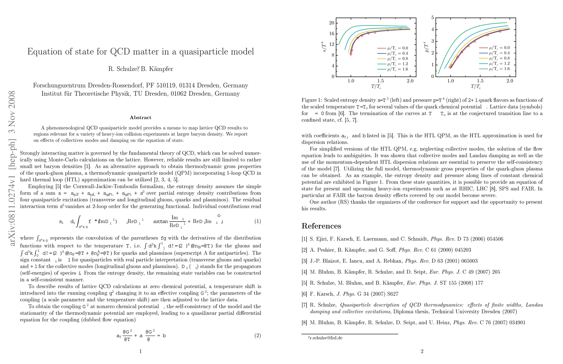 A phenomenological QCD quasiparticle model provides a means to map lattice QCD results to regions relevant for a variety of heavy-ion collision experiments at larger baryon density. We report on effects of collectives modes and damping on the equation of state.