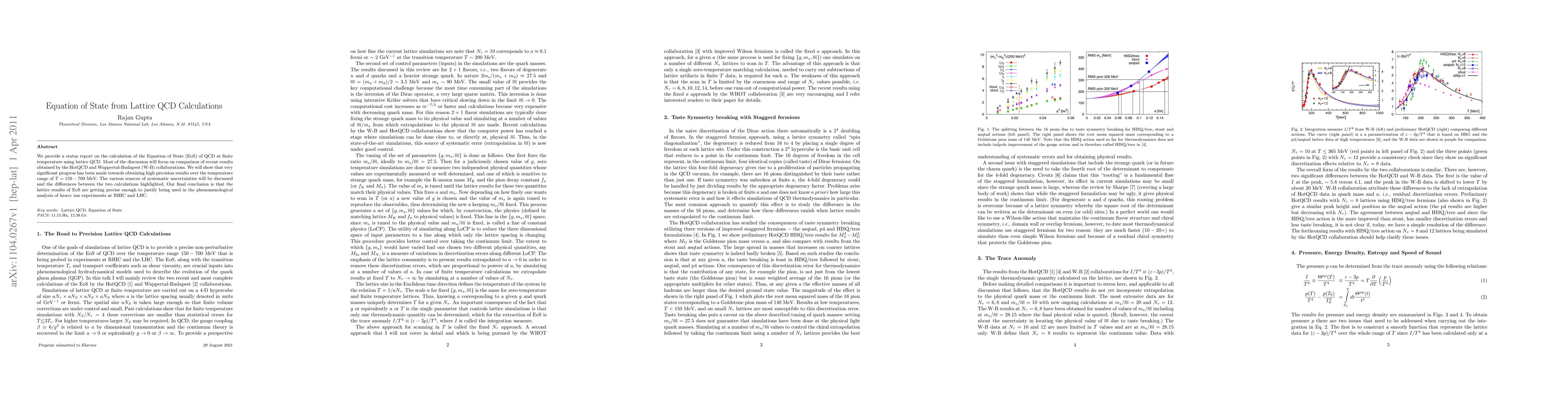 Researchers have made significant progress in calculating the Equation of State of Quantum Chromodynamics at finite temperature using lattice QCD, with results precise enough to inform phenomenological analysis of heavy ion experiments.