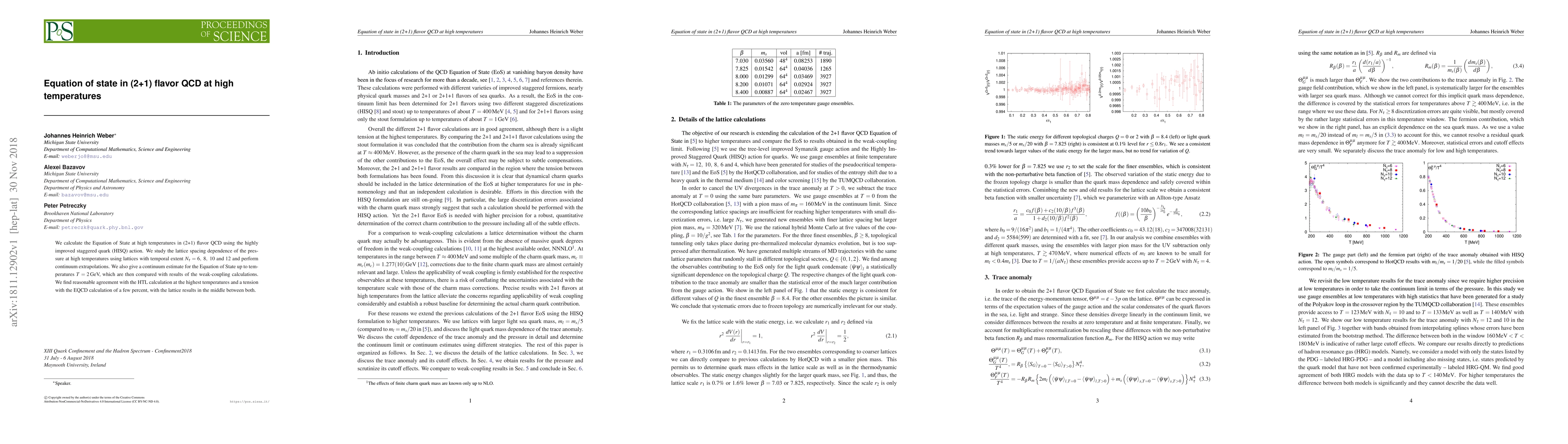 The paper presents a detailed analysis of the Equation of State in (2+1) flavor QCD at high temperatures using the HISQ action, including continuum extrapolations and comparison with weak-coupling calculations.