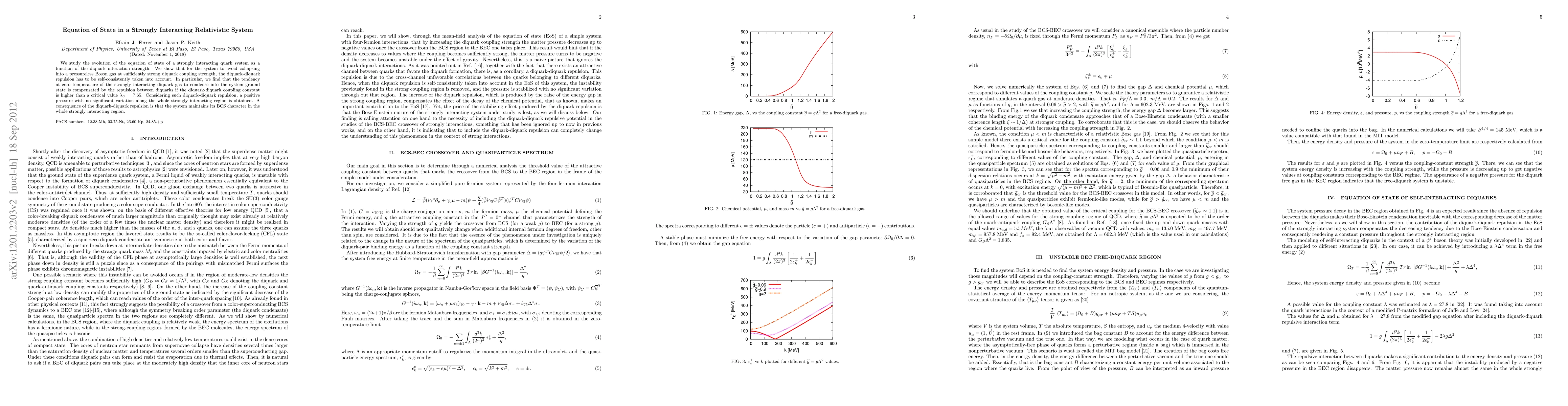 We study the evolution of the equation of state of a strongly interacting quark system as a function of the diquark interaction strength. We show that for the system to avoid collapsing into a pressureless Boson gas at sufficiently strong diquark coupling strength, the diquark-diquark repulsion has to be self-consistently taken into account. In particular, we find that the tendency at zero temperature of the strongly interacting diquark gas to condense into the system ground state is compensated by the repulsion between diquarks if the diquark-diquark coupling constant is higher than a critical value $\lambda_C=7.65$. Considering such diquark-diquark repulsion, a positive pressure with no significant variation along the whole strongly interacting region is obtained. A consequence of the diquark-diquark repulsion is that the system maintains its BCS character in the whole strongly interacting region.