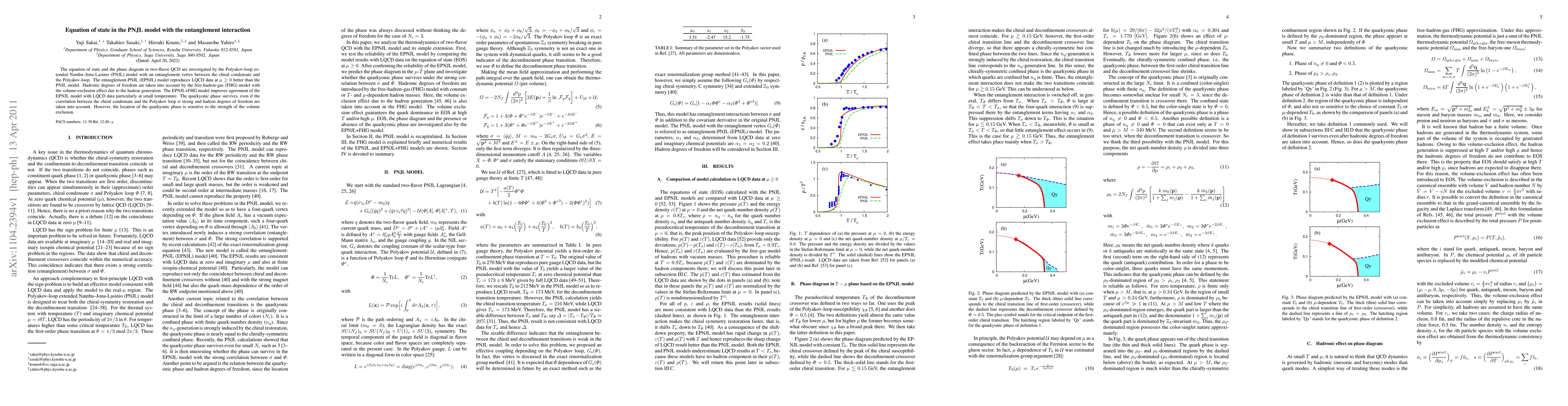 The equation of state and the phase diagram in two-flavor QCD are investigated by the Polyakov-loop extended Nambu--Jona-Lasinio (PNJL) model with an entanglement vertex between the chiral condensate and the Polyakov-loop. The entanglement-PNJL (EPNJL) model reproduces LQCD data at zero and finite chemical potential better than the PNJL model. Hadronic degrees of freedom are taken into account by the free-hadron-gas (FHG) model with the volume-exclusion effect due to the hadron generation. The EPNJL+FHG model improves agreement of the EPNJL model with LQCD data particularly at small temperature. The quarkyonic phase survives, even if the correlation between the chiral condensate and the Polyakov loop is strong and hadron degrees of freedom are taken into account. However, the location of the quarkyonic phase is sensitive to the strength of the volume exclusion.