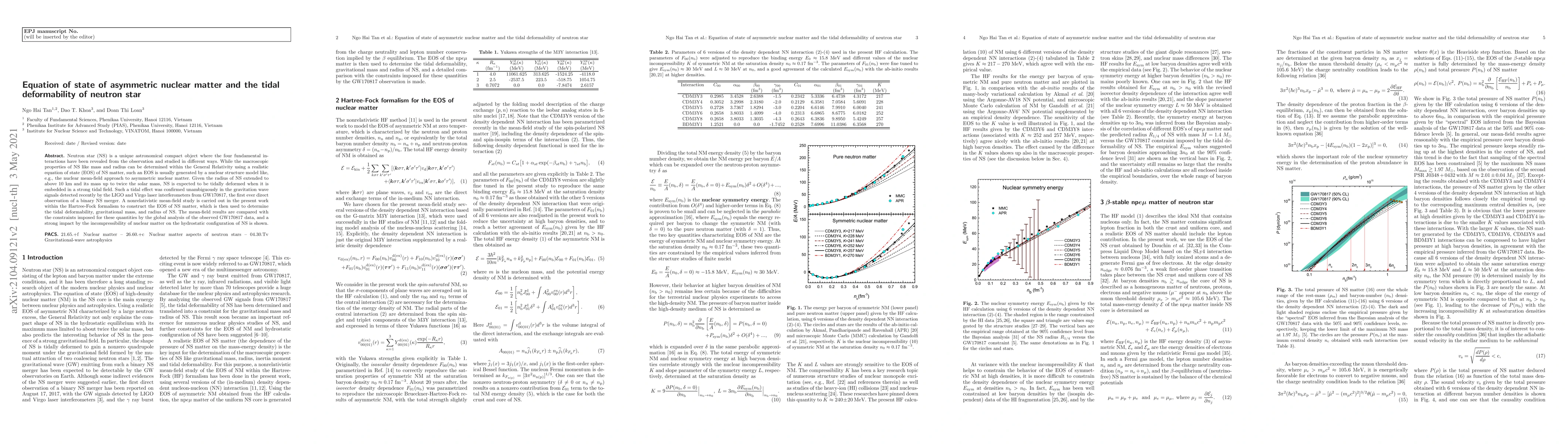This paper investigates the equation of state (EOS) of asymmetric nuclear matter and its impact on neutron star (NS) tidal deformability, using a nonrelativistic mean-field approach. The study compares the theoretical EOS predictions with observational constraints from the GW170817 binary NS merger, highlighting the influence of nuclear matter incompressibility on NS hydrostatic properties.