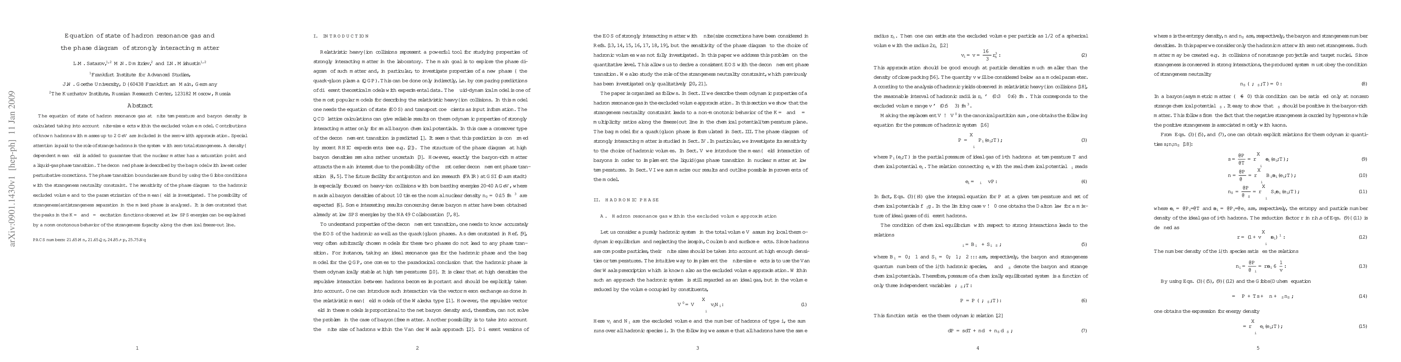 The equation of state of hadron resonance gas at finite temperature and baryon density is calculated taking into account finite-size effects within the excluded volume model. Contributions of known hadrons with masses up to 2 GeV are included in the zero-width approximation. Special attention is paid to the role of strange hadrons in the system with zero total strangeness. A density- dependent mean field is added to guarantee that the nuclear matter has a saturation point and a liquid-gas phase transition. The deconfined phase is described by the bag model with lowest order perturbative corrections. The phase transition boundary is found by using the Gibbs conditions with the strangeness neutrality constraint. The sensitivity of the phase diagram to the hadronic excluded volume and to the parametrization of the mean-field is investigated. The possibility of strangeness-antistrangeness separation in the mixed phase is analyzed. It is demonstrated that the peaks in the kaon to pion and lambda to pion multiplicity ratios can be explained by a nonmonotonous behavior of the strangeness fugacity along the chemical freeze-out line.