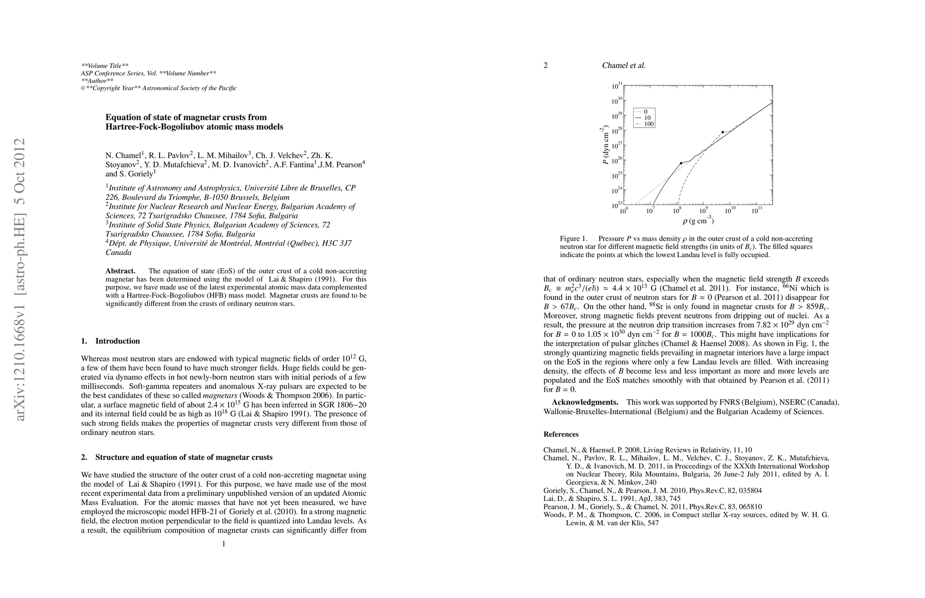 This study determines the equation of state of magnetar crusts using the Lai and Shapiro model, incorporating recent atomic mass data and Hartree-Fock-Bogoliubov models, revealing significant differences compared to neutron star crusts.