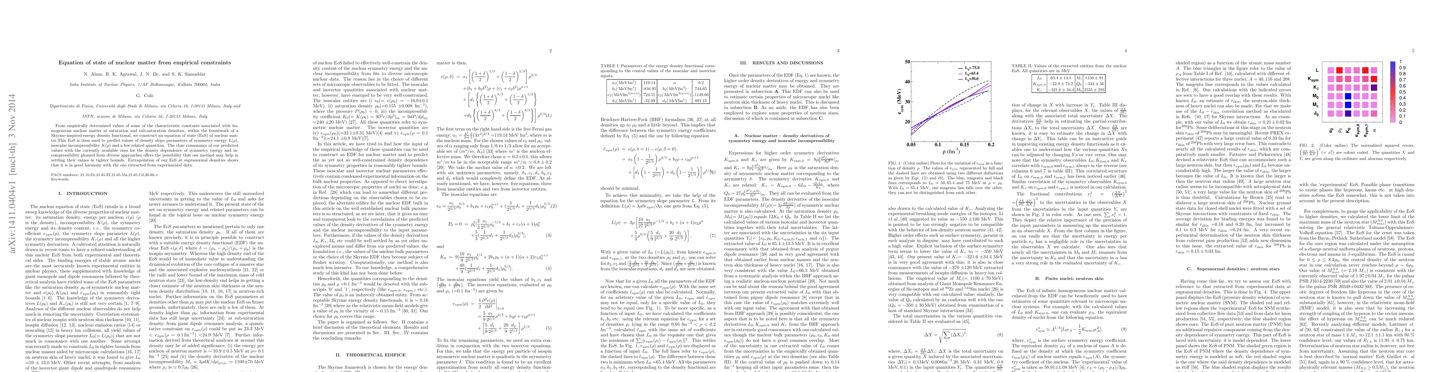 Researchers create an equation of state for nuclear matter using empirical constraints, predicting values that align with existing data and offering a potential method to settle their values in tighter bounds.