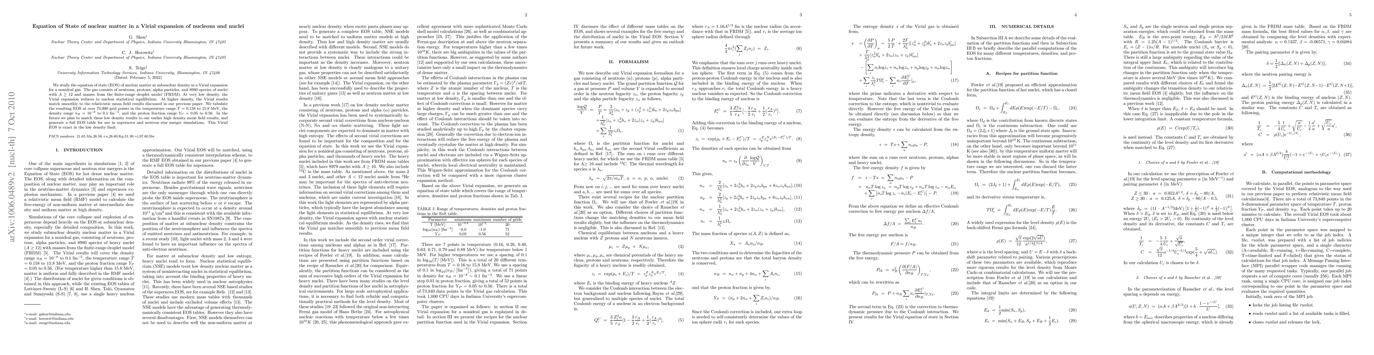 This paper investigates the equation of state (EOS) for nuclear matter using a Virial expansion at subnuclear densities, encompassing neutrons, protons, alpha particles, and numerous nuclei. The results are tabulated for a wide range of temperatures, densities, and proton fractions, aiming to provide a comprehensive EOS for astrophysical simulations.