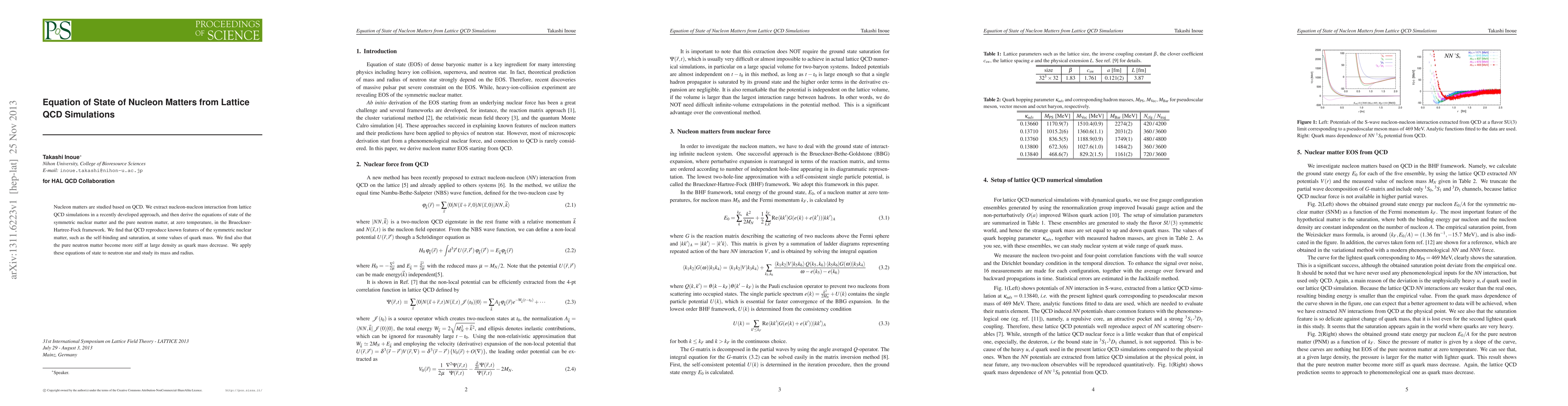 Nucleon matters are studied based on QCD. We extract nucleon-nucleon interaction from lattice QCD simulations in a recently developed approach, and then derive the equations of state of the symmetric nuclear matter and the pure neutron matter, at zero temperature, in the Brueckner-Hartree-Fock framework. We find that QCD reproduce known features of the symmetric nuclear matter, such as the self-binding and saturation, at some values of quark mass. We find also that the pure neutron matter become more stiff at large density as quark mass decrease. We apply these equations of state to neutron star and study its mass and radius.