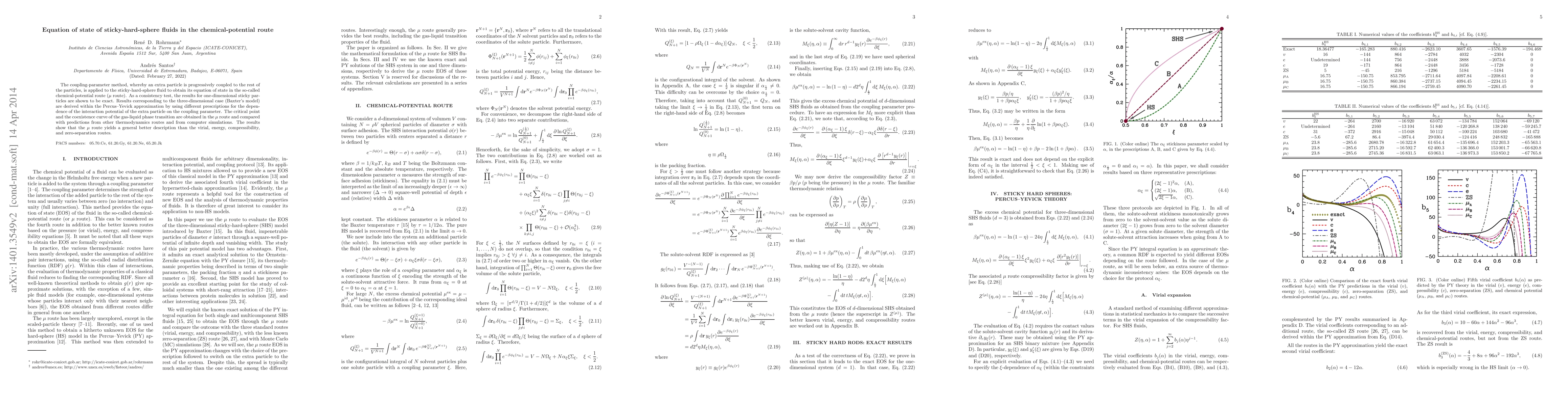 This paper applies the coupling-parameter method to derive the equation of state for sticky-hard-sphere fluids via the chemical-potential route, demonstrating exact results for one-dimensional sticky particles and deriving results for three-dimensional Baxter's model using the Percus-Yevick approximation. The $\mu$ route provides a better description of the gas-liquid phase transition compared to other thermodynamic routes.