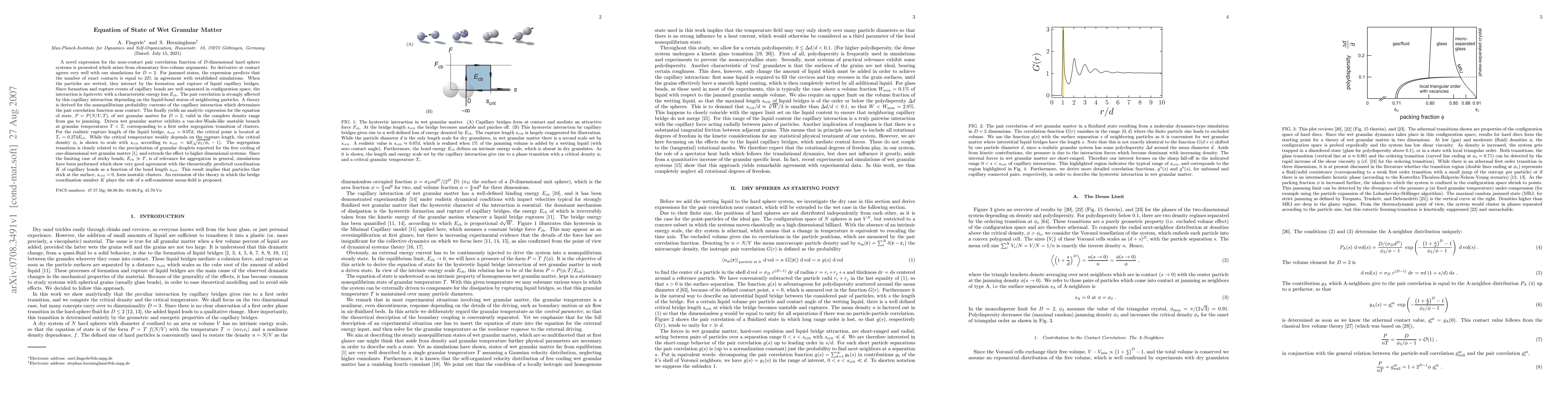 P(N/V,T), of wet granular matter for D=2 dimensions, valid in the complete