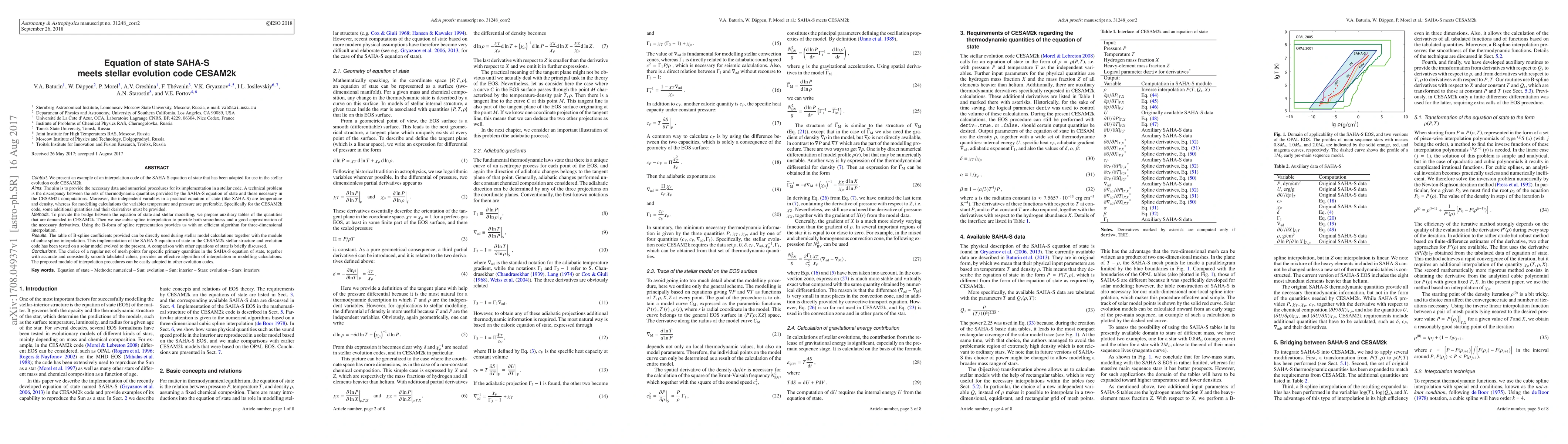 This paper presents an adaptation of the SAHA-S equation of state for use in the CESAM2k stellar evolution code, addressing discrepancies in thermodynamic quantities and variable preferences. It employs cubic spline interpolation for smooth and accurate three-dimensional data representation, facilitating effective stellar model calculations.