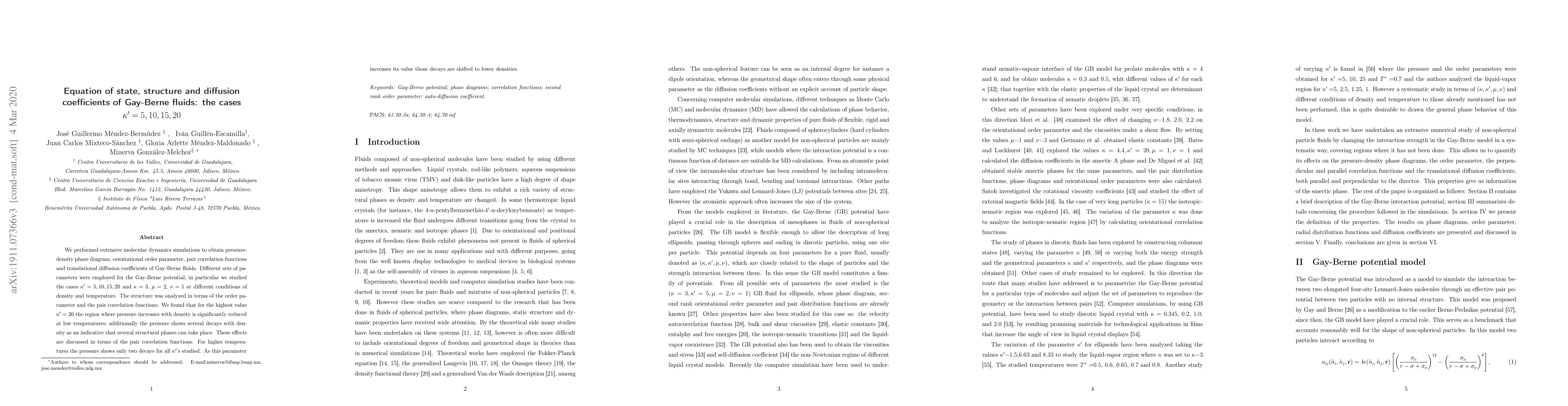 We performed extensive molecular dynamics simulations to obtain pressure-density phase diagram, orientational order parameter, pair correlation functions and translational diffusion coefficients of Gay-Berne fluids. Different sets of parameters were employed for the Gay-Berne potential, in particular we studied the cases $\kappa'=5, 10, 15, 20$ and $\kappa=3$, $\mu=2$, $\nu=1$ at different conditions of density and temperature. The structure was analyzed in terms of the order parameter and the pair correlation functions. We found that for the highest value $\kappa'=20$ the region where pressure increases with density is significantly reduced at low temperatures; additionally the pressure shows several decays with density as an indicative that several structural phases can take place. These effects are discussed in terms of the pair correlation functions. For higher temperatures the pressure shows only two decays for all $\kappa'$'s studied. As this parameter increases its value those decays are shifted to lower densities.