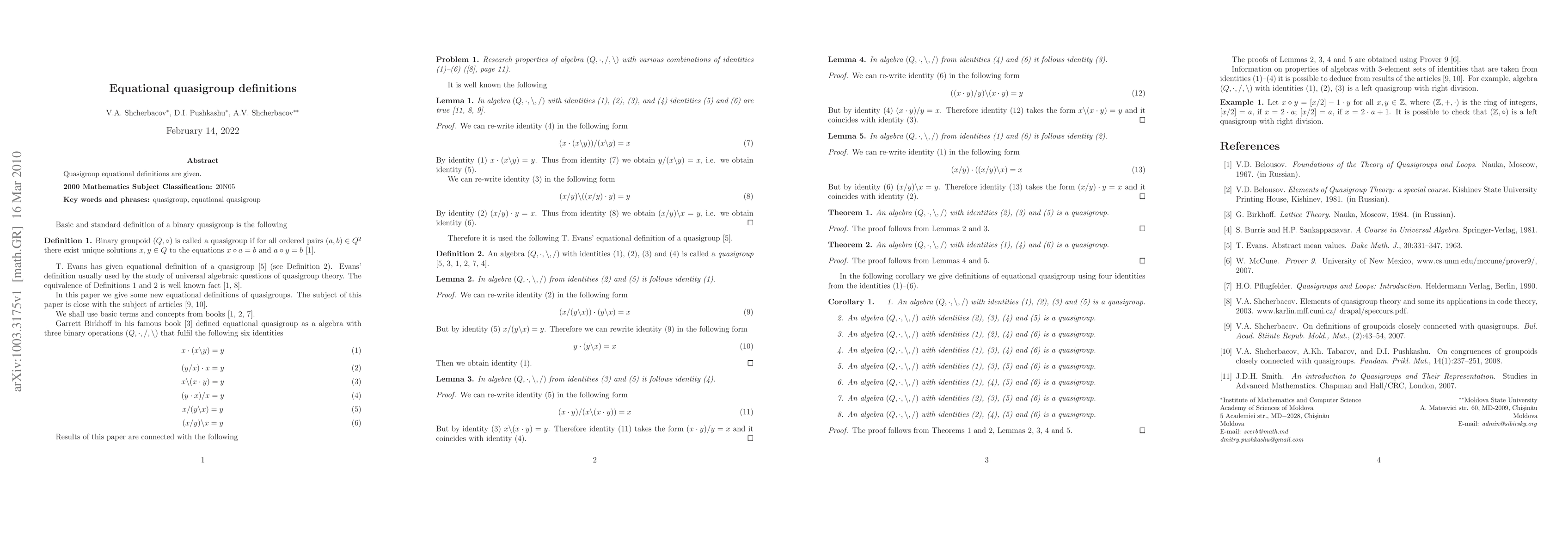 Quasigroup equational definitions are given.