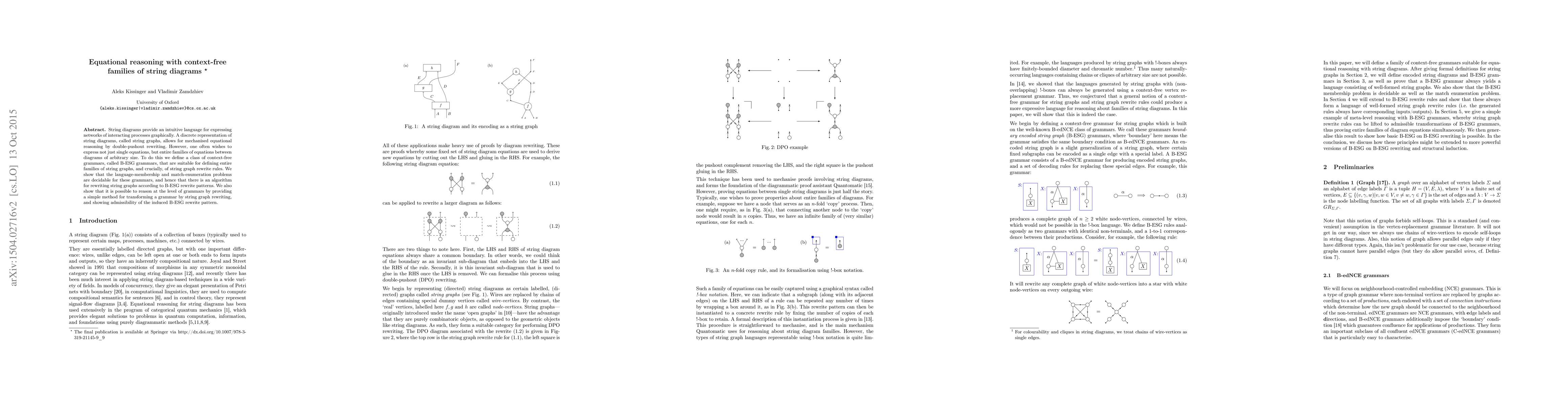 The paper defines B-ESG grammars for generating families of string graphs and their rewrite rules, demonstrating decidability of language-membership and match-enumeration, and presents an algorithm for string graph rewriting with these grammars. It also provides a method to transform grammars via string graph rewriting, ensuring the admissibility of the resulting rewrite patterns.