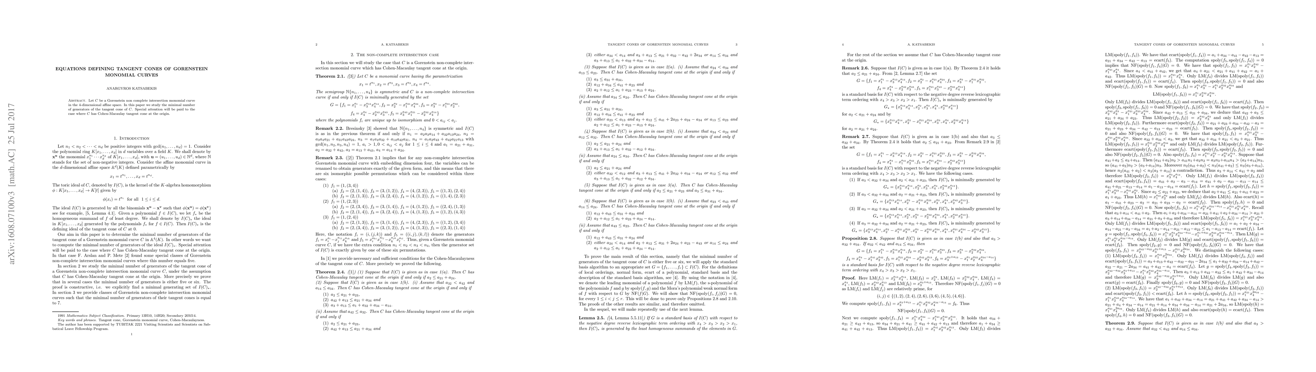 This paper investigates the minimal number of generators for the tangent cones of Gorenstein monomial curves, focusing particularly on those that have Cohen-Macaulay tangent cones at the origin in 4-dimensional affine space.