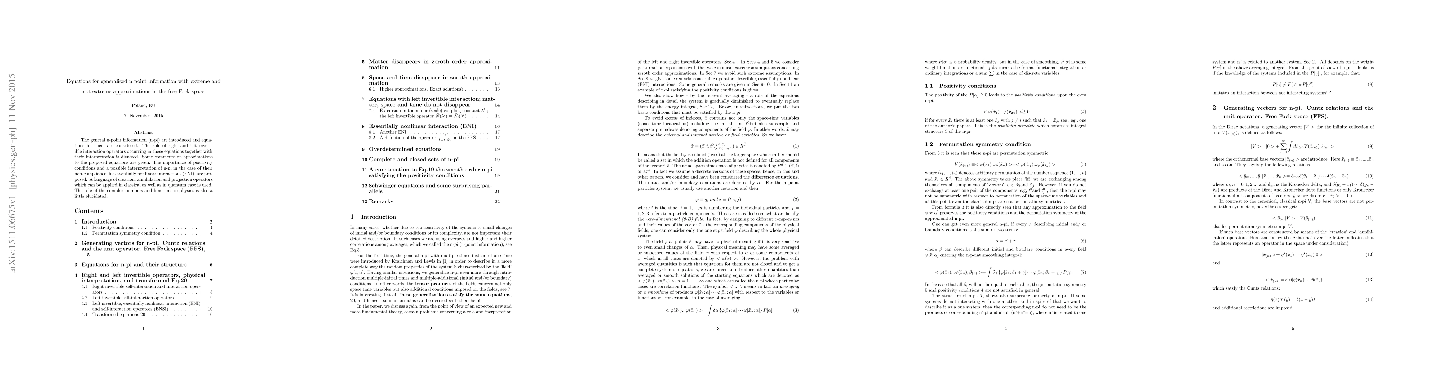 The general n-point information (n-pi) are introduced and equations for them are considered. The role of right and left invertible interaction operators occurring in these equations together with their interpretation is discussed. Some comments on approximations to the proposed equations are given. The importance of positivity conditions and a possible interpretation of n-pi in the case of their non-compliance, for essentially non-linear interactions (ENI), are proposed. A language of creation, annihilation and projection operators which can be applied in classical as well as in quantum case is used. The role of the complex numbers and functions in physics is also a little elucidated.