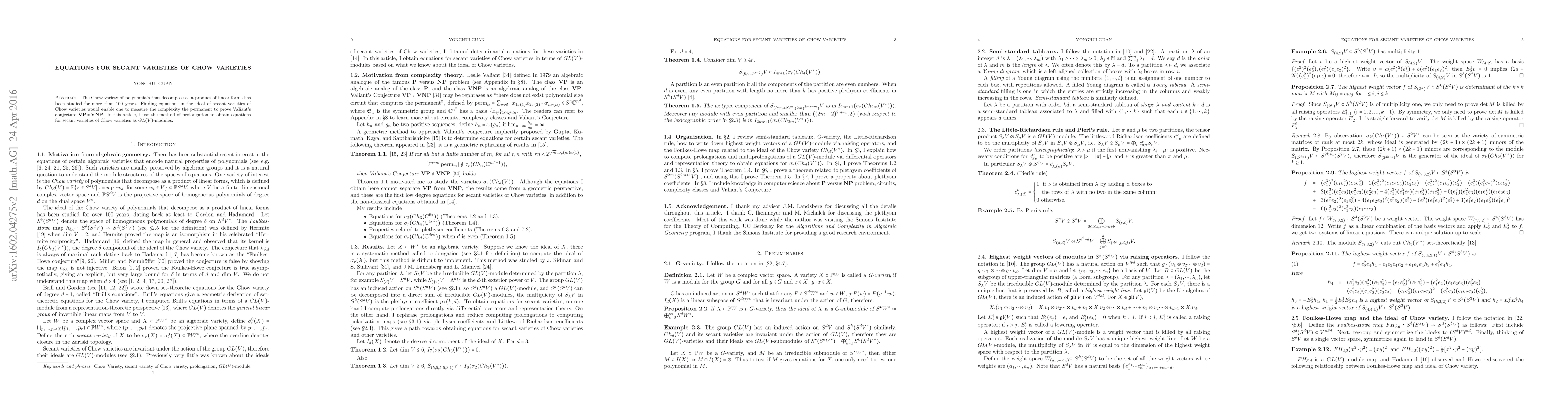 This paper develops equations for secant varieties of Chow varieties, utilizing prolongation methods, which could potentially aid in understanding the complexity of the permanent and in proving Valiant's $\mathbf{VP\neq VNP}$ conjecture. The focus is on Chow varieties related to polynomials decomposable as products of linear forms.