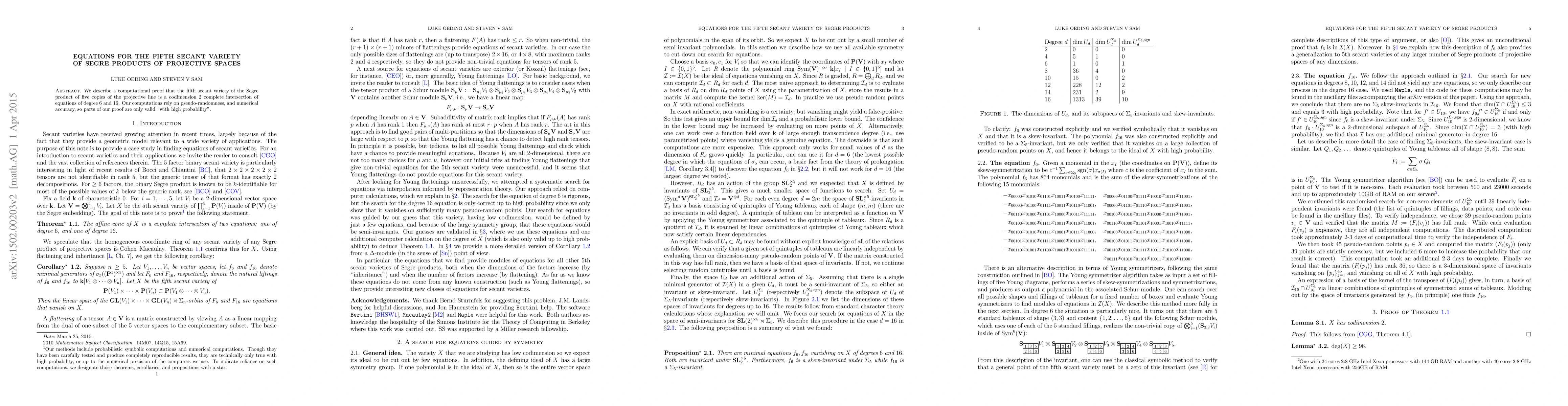 We describe a computational proof that the fifth secant variety of the Segre product of five copies of the projective line is a codimension 2 complete intersection of equations of degree 6 and 16. Our computations rely on pseudo-randomness, and numerical accuracy, so parts of our proof are only valid "with high probability".