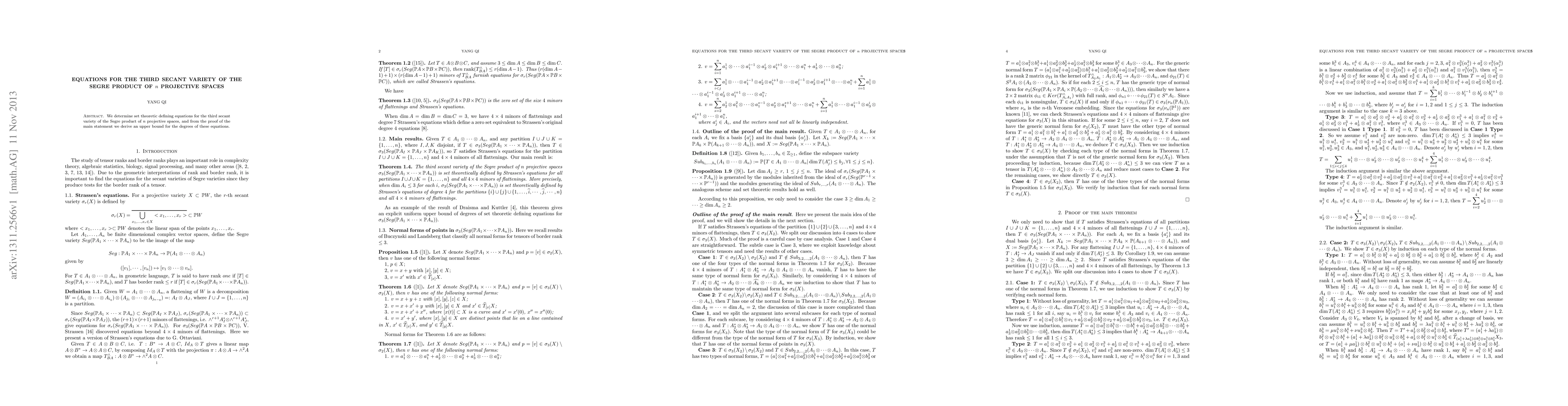 Summary: The paper identifies set theoretic defining equations for the third secant variety of the Segre product of $n$ projective spaces and provides an upper bound for the degrees of these equations. This contributes to understanding the geometric structure of these varieties.