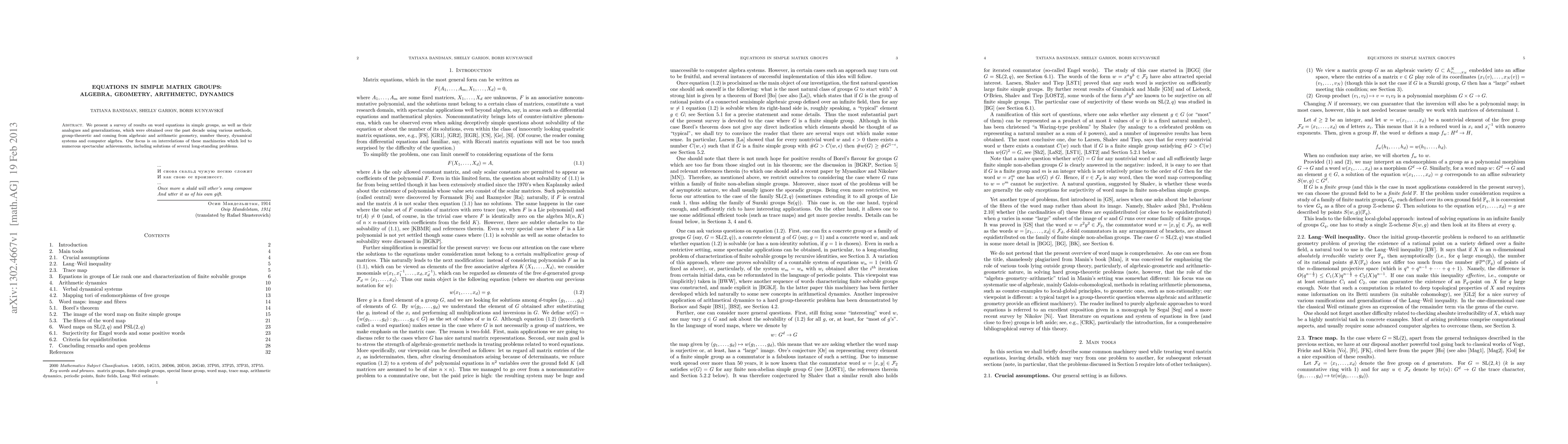 We present a survey of results on word equations in simple groups, as well as their analogues and generalizations, which were obtained over the past decade using various methods, group-theoretic and coming from algebraic and arithmetic geometry, number theory, dynamical systems and computer algebra. Our focus is on interrelations of these machineries which led to numerous spectacular achievements, including solutions of several long-standing problems.