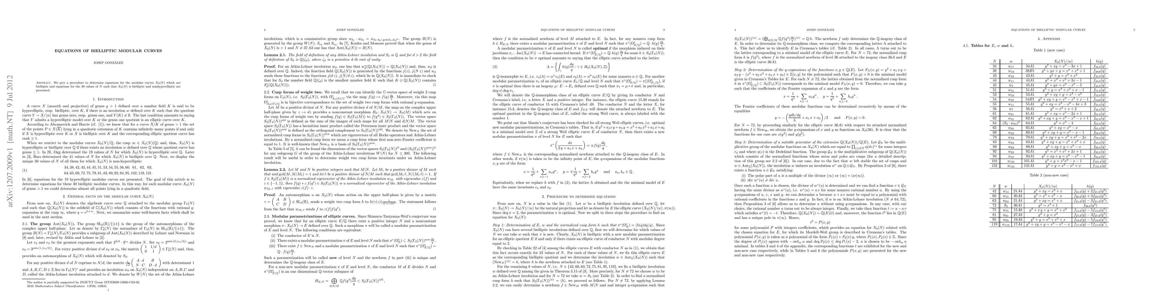 Summary: This paper presents a method for deriving equations of bielliptic modular curves $X_0(N)$, specifically identifying and providing equations for the 30 values of $N$ where $X_0(N)$ is bielliptic and nonhyperelliptic. The focus is on the classification and explicit construction of these curves.