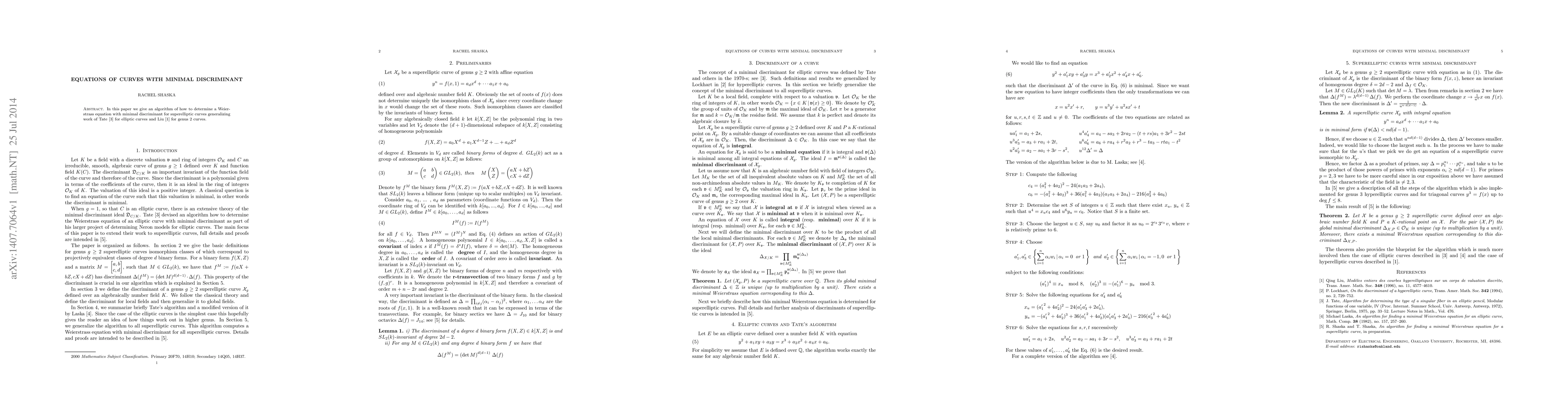 This paper presents an algorithm to find the Weierstrass equation with the smallest discriminant for superelliptic curves, extending previous work on elliptic curves by Tate and genus 2 curves by Liu.