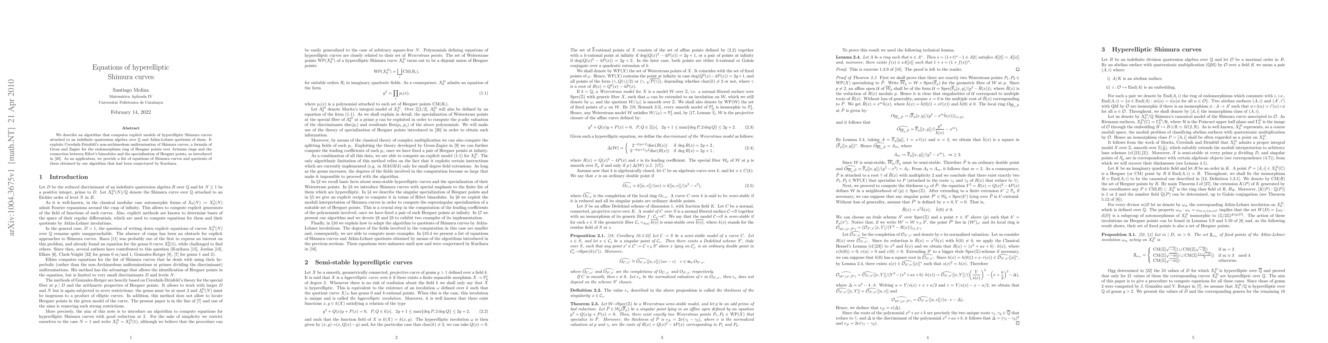 This paper presents an algorithm for finding explicit equations of hyperelliptic Shimura curves and their Atkin-Lehner quotients, leveraging Cerednik-Drinfeld's uniformization, Gross-Zagier's endomorphism ring formula, and connections to Ribet's bimodules, ultimately providing equations previously conjectured by Kurihara.
