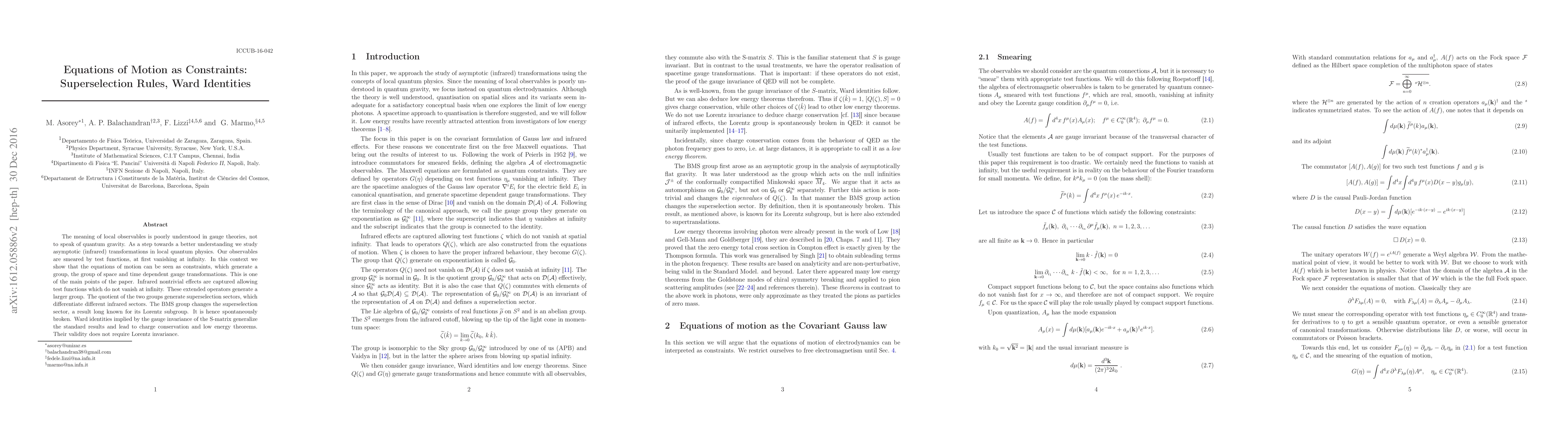 This paper explores the role of equations of motion as constraints in gauge theories, demonstrating how they generate a group of space and time-dependent gauge transformations. It reveals that infrared effects lead to superselection sectors and spontaneous breaking of the BMS group, while generalized Ward identities emerge from gauge invariance.