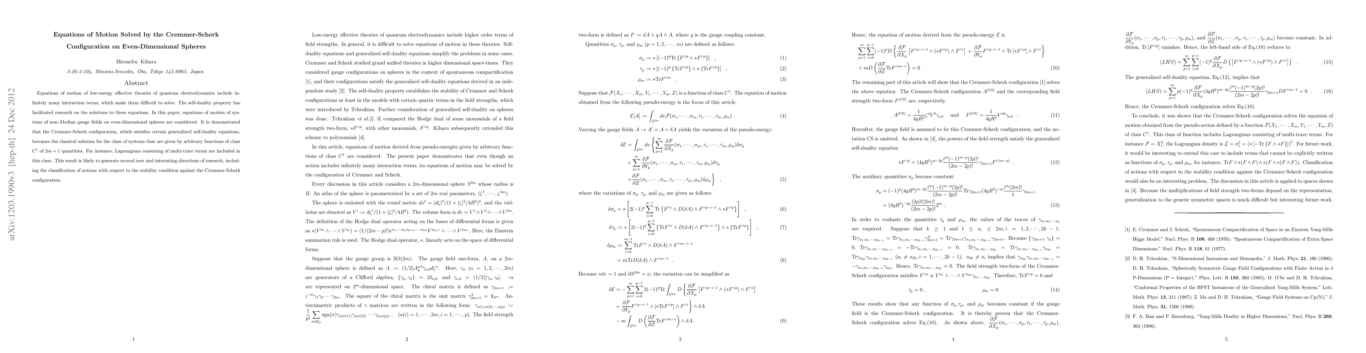 Equations of motion of low-energy effective theories of quantum electrodynamics include infinitely many interaction terms, which make them difficult to solve. The self-duality property has facilitated research on the solutions to these equations. In this paper, equations of motion of systems of non-Abelian gauge fields on even-dimensional spheres are considered. It is demonstrated that the Cremmer-Scherk configuration, which satisfies certain generalized self-duality equations, becomes the classical solution for the class of systems that are given by arbitrary functions of class C^1 of 2m+1 quantities. For instance, Lagrangians consisting of multi-trace terms are included in this class. This result is likely to generate several new and interesting directions of research, including the classification of actions with respect to the stability condition against the Cremmer-Scherk configuration.