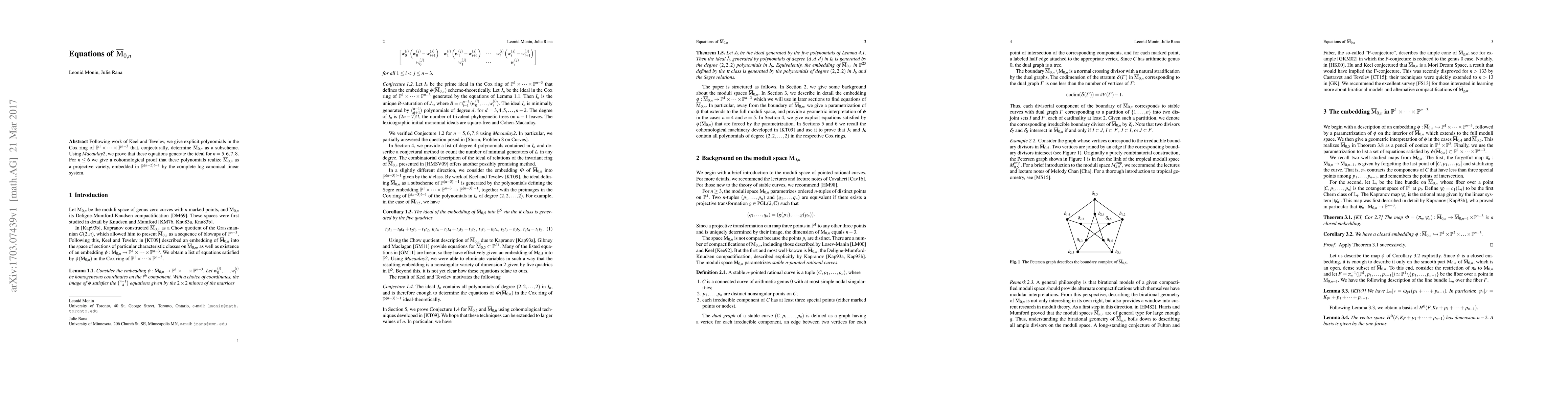 Following work of Keel and Tevelev, we give explicit polynomials in the Cox ring of $\mathbb{P}^1\times\cdots\times\mathbb{P}^{n-3}$ that, conjecturally, determine $\overline{M}_{0,n}$ as a subscheme. Using Macaulay2, we prove that these equations generate the ideal for $n=5, 6, 7, 8$. For $n \leq 6$ we give a cohomological proof that these polynomials realize $\overline{M}_{0,n}$ as a projective variety, embedded in $\mathbb{P}^{(n-2)!-1}$ by the complete log canonical linear system.