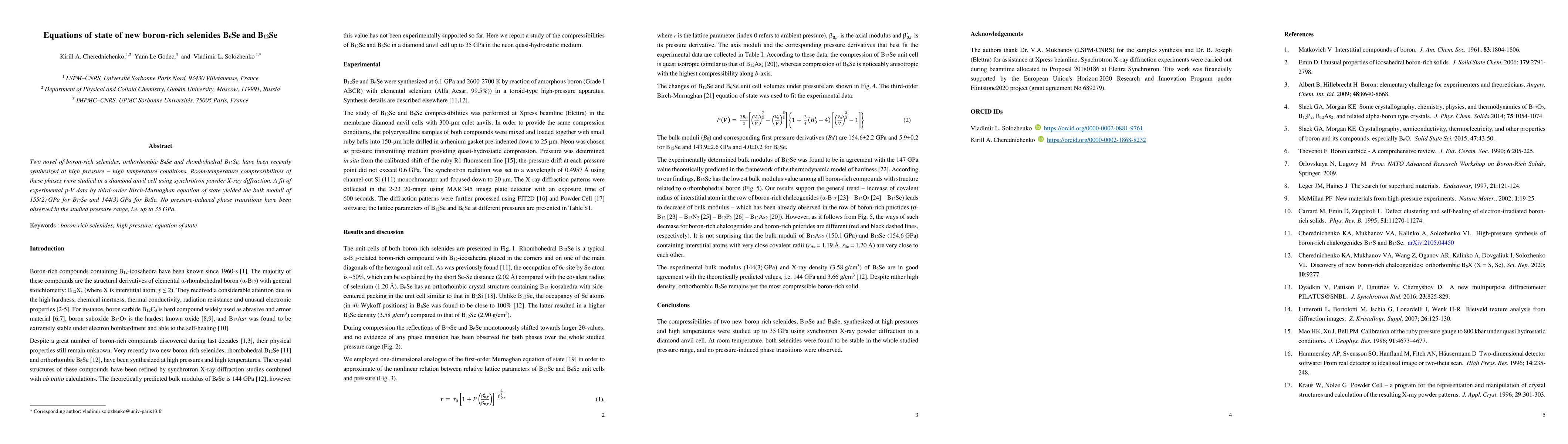 Two novel of boron-rich selenides, orthorhombic B$_6$Se and rhombohedral B$_{12}$Se, have been recently synthesized at high pressure - high temperature conditions. Room-temperature compressibilities of these phases were studied in a diamond anvil cell using synchrotron powder X-ray diffraction. A fit of experimental p-V data by third-order Birch-Murnaghan equation of state yielded the bulk moduli of 155(2) GPa for B$_{12}$Se and 144(3) GPa for B$_6$Se. No pressure-induced phase transitions have been observed in the studied pressure range, i.e., up to 35 GPa.