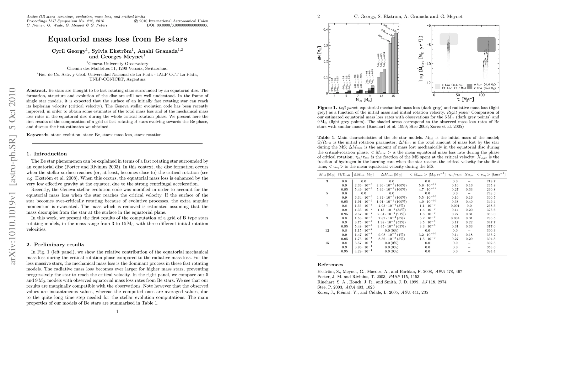Be stars are thought to be fast rotating stars surrounded by an equatorial disc. The formation, structure and evolution of the disc are still not well understood. In the frame of single star models, it is expected that the surface of an initially fast rotating star can reach its keplerian velocity (critical velocity). The Geneva stellar evolution code has been recently improved, in order to obtain some estimates of the total mass loss and of the mechanical mass loss rates in the equatorial disc during the whole critical rotation phase. We present here the first results of the computation of a grid of fast rotating B stars evolving towards the Be phase, and discuss the first estimates we obtained.