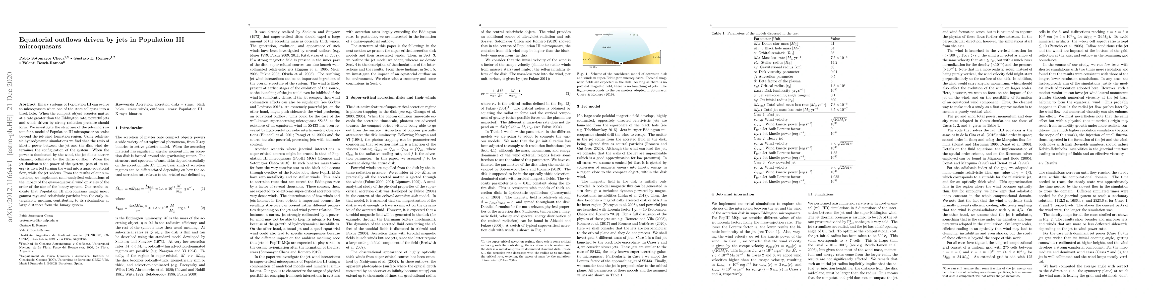 Binary systems of Population III can evolve to microquasars when one of the stars collapses into a black hole. When the compact object accretes matter at a rate greater than the Eddington rate, powerful jets and winds driven by strong radiation pressure should form. We investigate the structure of the jet-wind system for a model of Population III microquasar on scales beyond the jet-wind formation region. Using relativistic hydrodynamic simulations we find that the ratio of kinetic power between the jet and the disk wind determines the configuration of the system. When the power is dominated by the wind, the jet fills a narrow channel, collimated by the dense outflow. When the jet dominates the power of the system, part of its energy is diverted turning the wind into a quasi-equatorial flow, while the jet widens. From the results of our simulations, we implement semi-analytical calculations of the impact of the quasiequatorial wind on scales of the order of the size of the binary system. Our results indicate that Population III microquasars might inject gamma rays and relativistic particles into the early intergalactic medium, contributing to its reionization at large distances from the binary system.