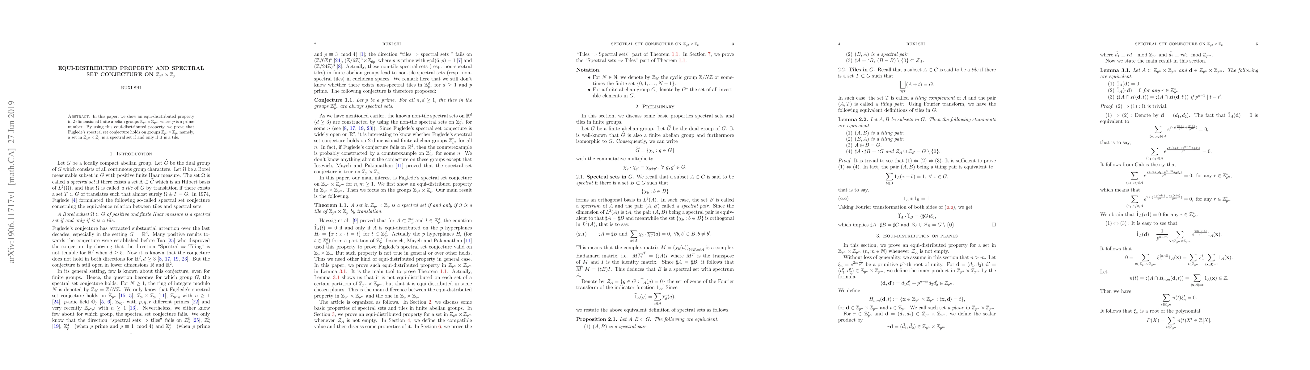 This paper demonstrates an equi-distributed property in the 2-dimensional finite abelian group $\mathbb{Z}_{p^2}\times \mathbb{Z}_{p}$ for prime $p$, and utilizes this property to prove Fuglede's spectral set conjecture holds true for these groups, establishing that a set is spectral if and only if it is a tile.