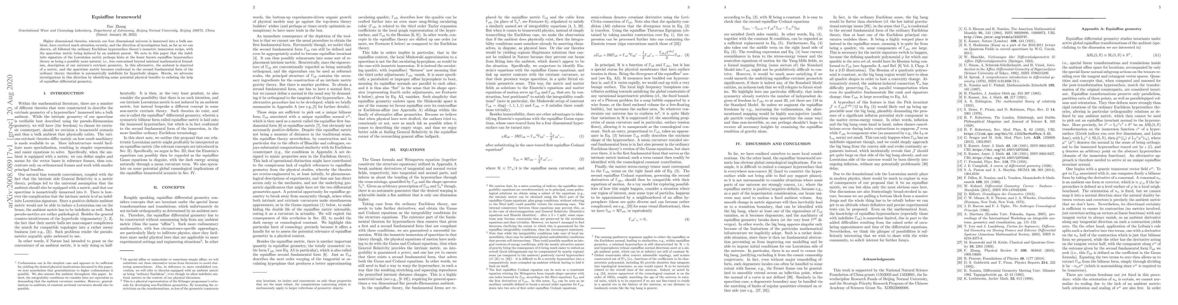 Higher dimensional theories, wherein our four dimensional universe is immersed into a bulk ambient, have received much attention recently, and the direction of investigation had, as far as we can discern, all followed the ordinary Euclidean hypersurface theory's isometric immersion recipe, with the spacetime metric being induced by an ambient parent. We note in this paper that the indefinite signature of the Lorentzian metric perhaps hints at the lesser known equiaffine hypersurface theory as being a possibly more natural, i.e., less customized beyond minimal mathematical formalism, description of our universe's extrinsic geometry. In this alternative, the ambient is deprived of a metric, and the spacetime metric becomes conformal to the second fundamental form of the ordinary theory, therefore is automatically indefinite for hyperbolic shapes. Herein, we advocate investigations in this direction by identifying some potential physical benefits to enlisting the help of equiaffine differential geometry.