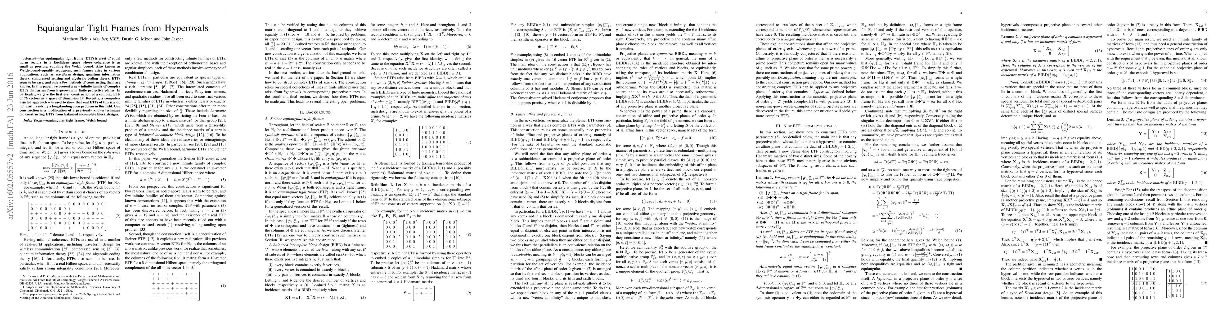 Researchers discovered a new method to construct equiangular tight frames from hyperovals in finite projective planes, resolving an open problem and providing a large-scale example of such frames.