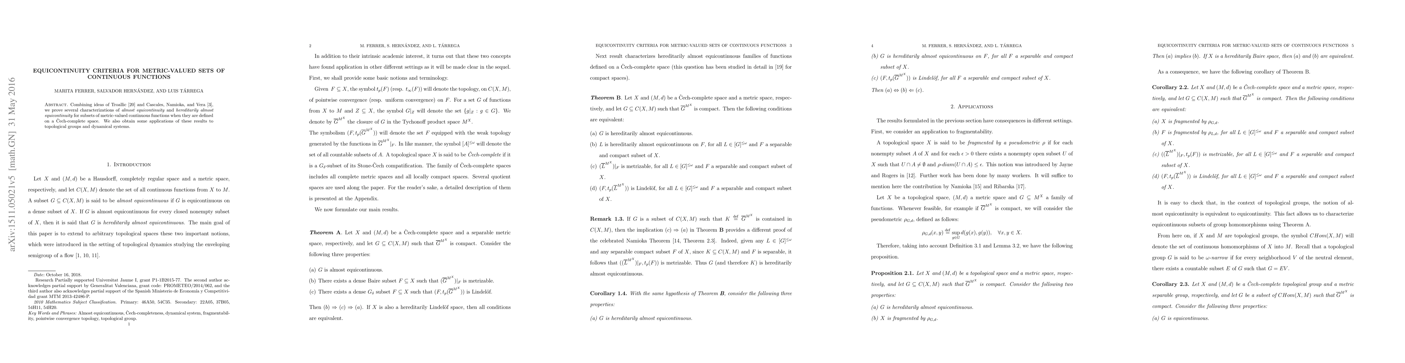 Combining ideas of Troallic and Cascales, Namioka, and Vera, we prove several characterizations of \textit{almost equicontinuity} and \textit{hereditary almost equicontinuity} for subsets of metric-valued continuous functions when they are defined on a \v{C}ech-complete space. We also obtain some applications of these results to topological groups and dynamical systems.