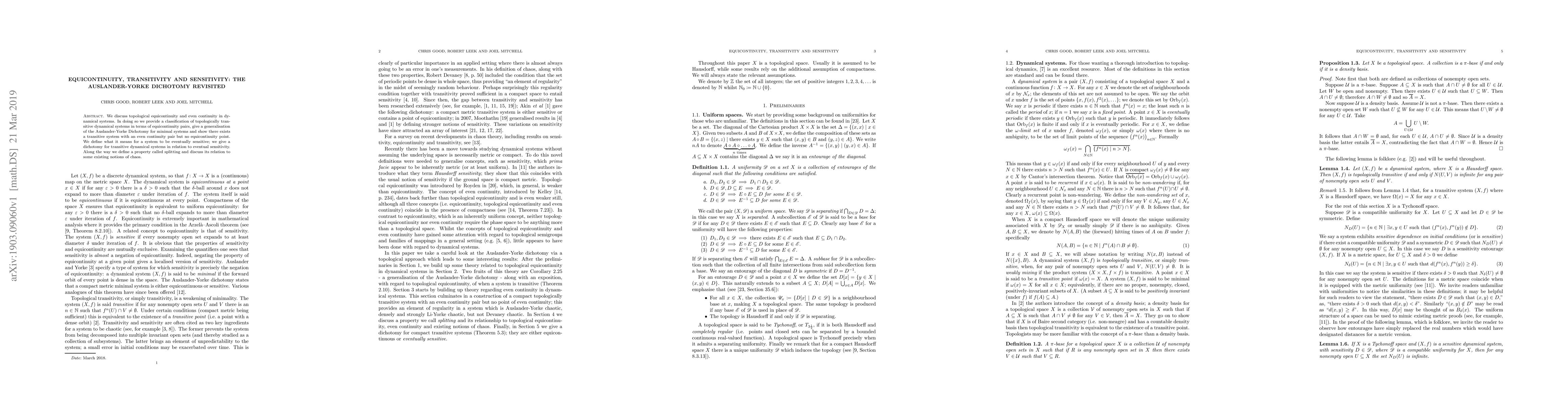 This paper revisits the Auslander-Yorke Dichotomy in dynamical systems, classifying topologically transitive systems based on equicontinuity pairs and generalizing the Dichotomy for minimal systems. It also explores eventual sensitivity and introduces a new property called splitting in relation to chaos.