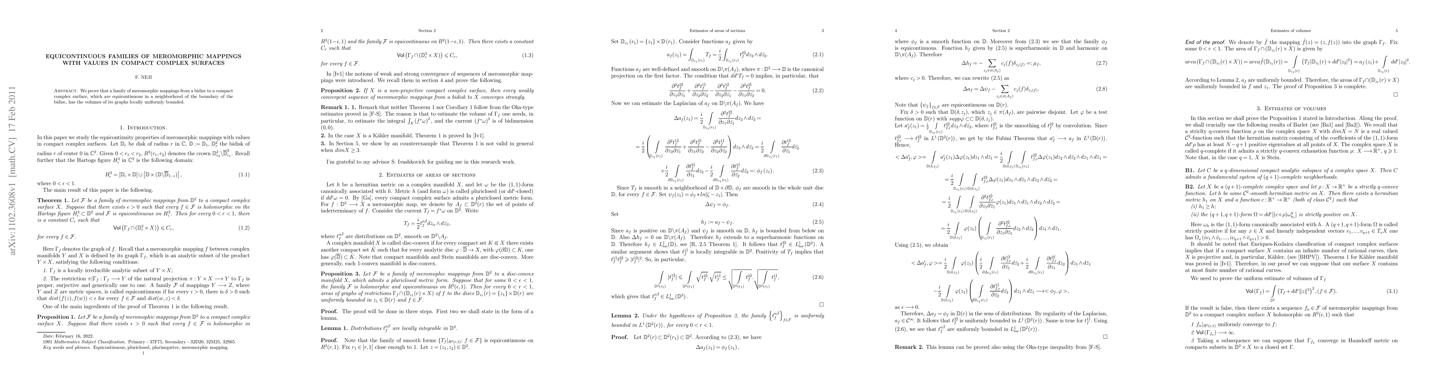 Summary: This paper demonstrates that equicontinuous families of meromorphic mappings from a bidisc to a compact complex surface have locally uniformly bounded volumes of their graphs. The study focuses on the behavior near the boundary of the bidisc.