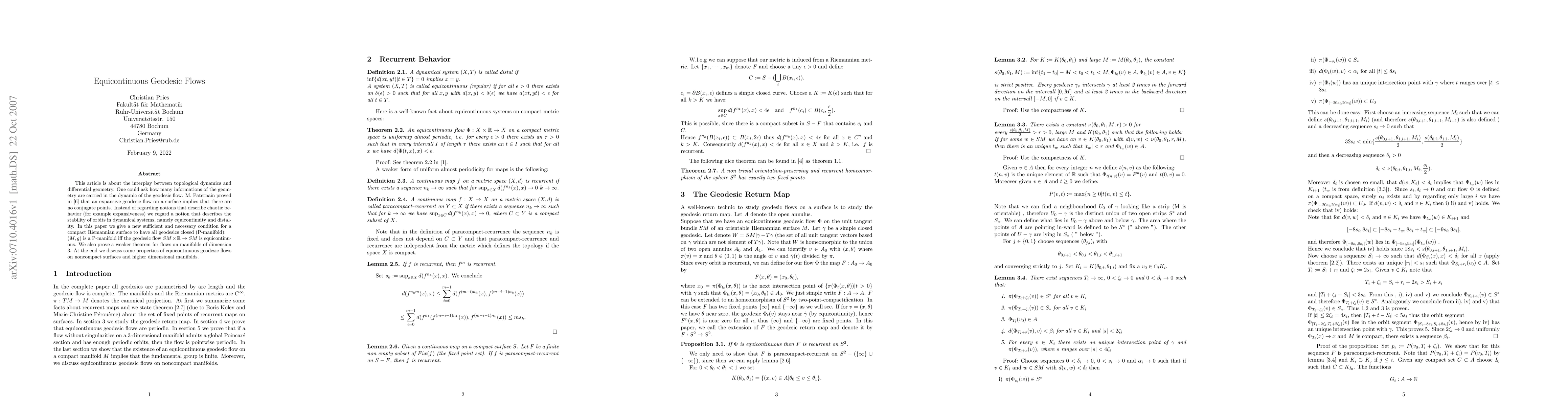 Summary: This paper demonstrates that equicontinuous geodesic flows on surfaces and 3-manifolds are periodic by proving the return map's recurrence, establishing periodicity through this property.