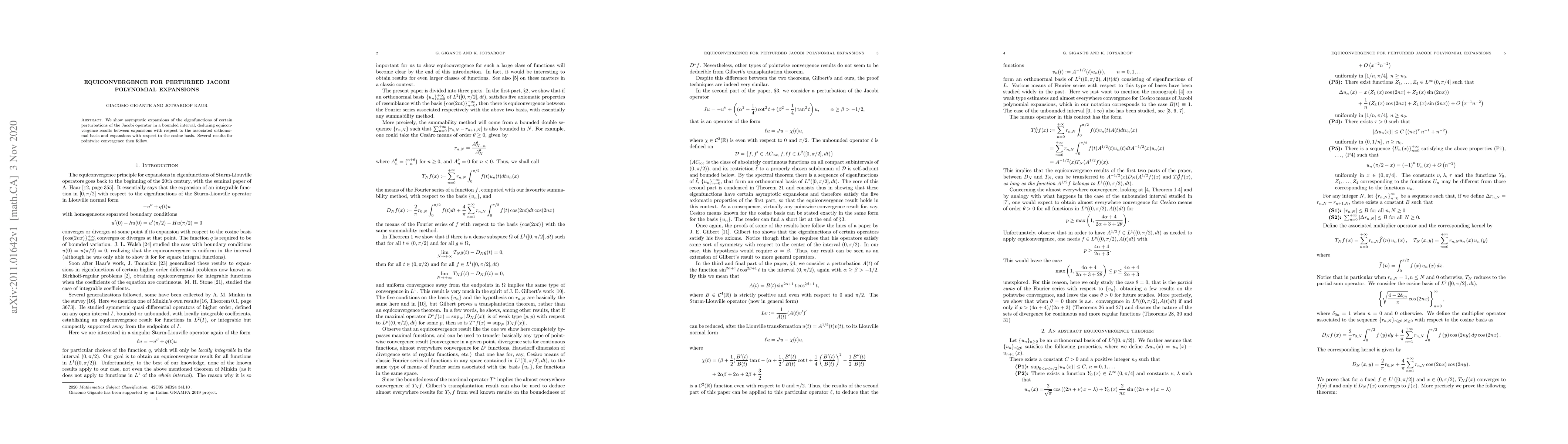 We show asymptotic expansions of the eigenfunctions of certain perturbations of the Jacobi operator in a bounded interval, deducing equiconvergence results between expansions with respect to the associated orthonormal basis and expansions with respect to the cosine basis. Several results for pointwise convergence then follow.