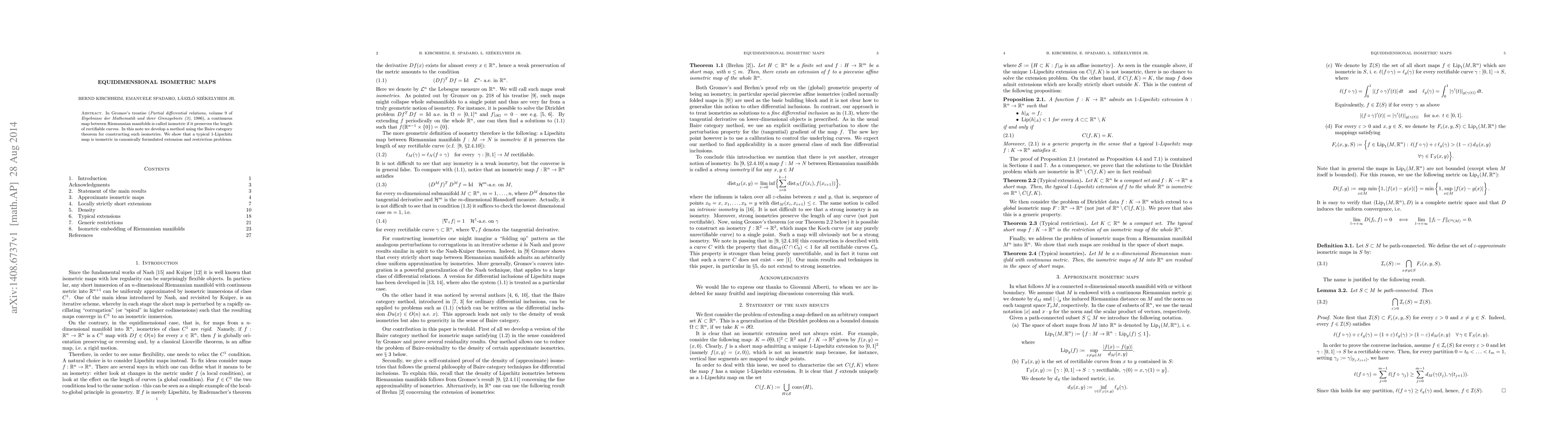 Researchers develop a method to construct isometric maps between Riemannian manifolds using the Baire category theorem, showing that typical 1-Lipschitz maps preserve curve length in certain cases.