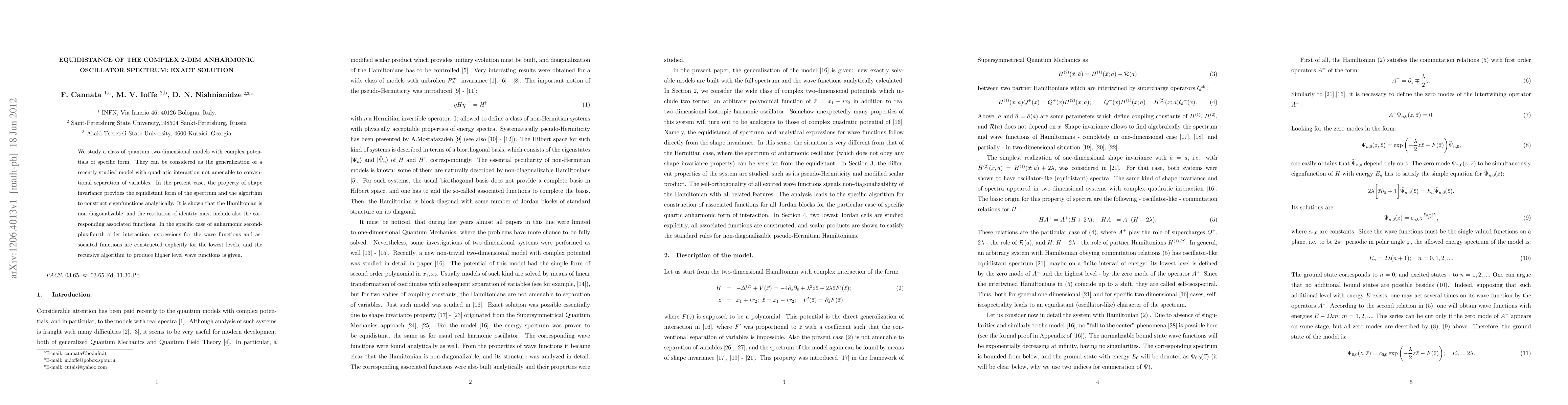 This paper investigates a class of quantum two-dimensional models with complex potentials, revealing shape invariance that leads to an equidistant spectrum. It provides an analytical algorithm for constructing eigenfunctions, including the associated functions for non-diagonalizable Hamiltonians, and explicitly constructs wave functions for anharmonic second-plus-fourth order interactions.