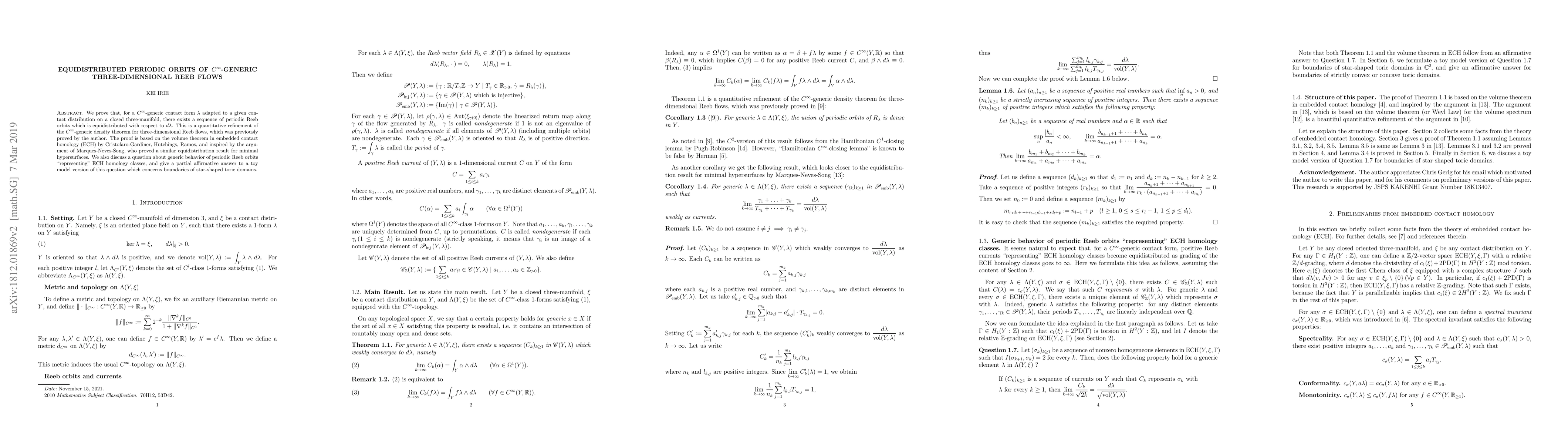 For a $C^ty$-generic contact form on a closed three-manifold, a sequence of periodic Reeb orbits is equidistributed with respect to the contact form's volume element, extending a previously proved result for minimal hypersurfaces.