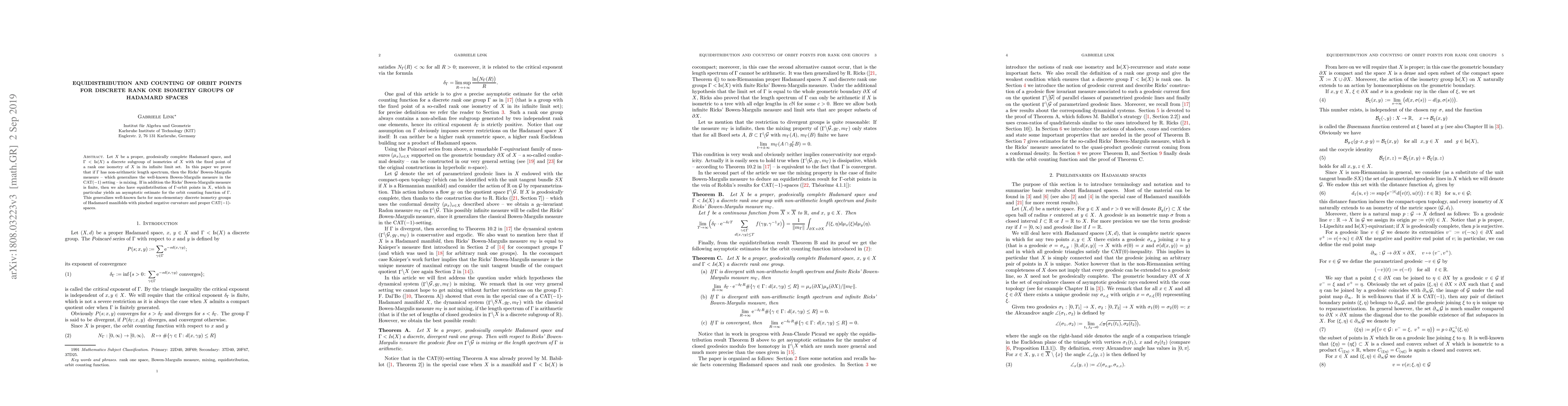 Research proves that discrete rank one isometry groups of Hadamard spaces have a mixing Ricks' Bowen-Margulis measure if their length spectrum is non-arithmetic, leading to equidistribution of orbit points and an estimate for the orbit counting function.