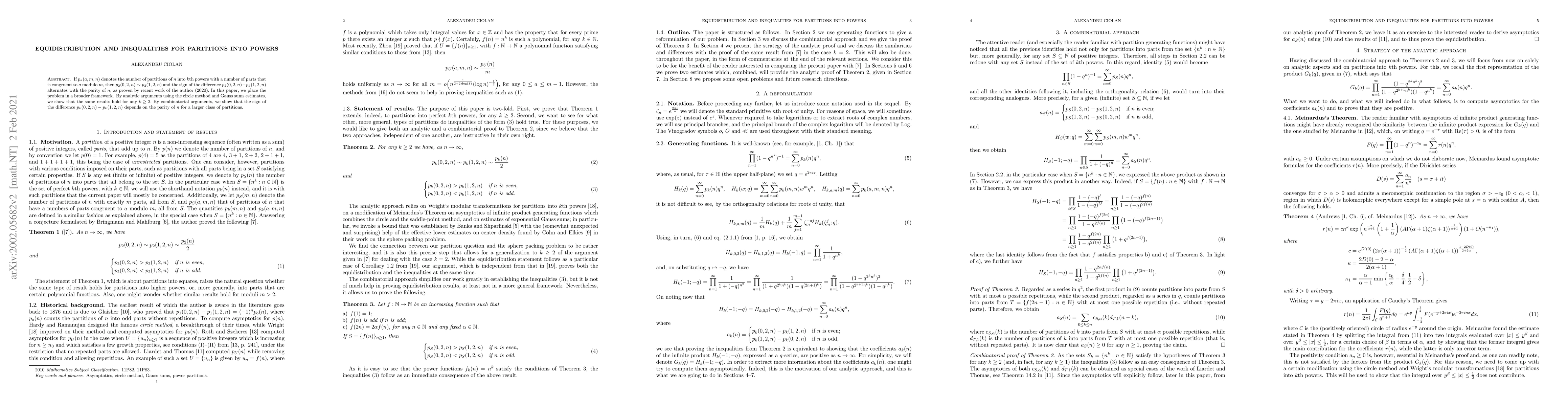 This paper proves that a specific inequality for partitions into powers holds true for all k >= 2, extending previous results with combinatorial and analytic arguments.